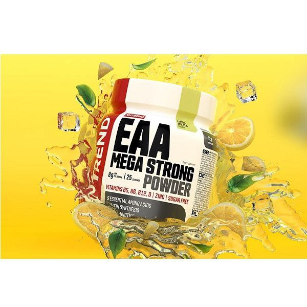 پودر آمینو اسید ای ای ای ناترند مگا استرانگ ترکیبی از نه اسید آمینه ضروری (EAA) در فورمت فوری، طراحی شده برای تهیه نوشیدنی های طعم دار، برای مصرف قبل از ورزش است.بدن ما قادر به سنتز اسید های آمینه ضروری نیست و دریافت آن ها منوط به رژیم غذایی پروتئین با کیفیت بالا است. ای ای ای مگا استرانگ را می توان به عنوان یک عنصر هیدراتاسیون در هنگام افزایش فعالیت بدنی استفاده کرد.این مکمل ناترند مخلوطی از اسید های آمینه ضروری با ویتامین های B5 و B6 غنی شده است. مگا استرانگ از متابولیسم پروتئین و گلیکوژن پشتیبانی می کند. همچنین ویتامین D برای عملکرد مناسب ماهیچه ها و سیستم ایمنی به پودر ای ای ای افزوده شده است.این مکمل همچنین با روی غنی شده است که به سنتز پروتئین کمک می کند. از عصاره چای سبز و ویتامین B12 در این محصول برای کاهش خستگی استفاده شده است