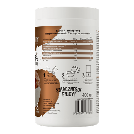 بستنی پروتئینی که توسط OstroVit ساخته شده است مکمل کاملی برای رژیم غذایی حاوی پروتئین است. 100 گرم از این محصول 49 گرم پروتئین به بدن می رساند که آن را به یک بمب پروتئینی واقعی تبدیل می کند. برخلاف بسیاری از بستنی های موجود در فروشگاه ها، بستنی استرویت حاوی چربی بسیار کمی است و قند اضافی ندارد. همچنین به دلیل محتوای فیبر رژیمی بالا از سایر محصولات متمایز می شود و حتی احساس سیری طولانی را تجربه خواهید کرد.