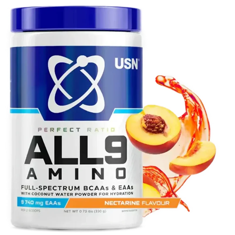 آمینو All9 یو اس ان (USN All9 Essential Amino Acids) یک مکمل پیشرفته است که طیف کامل ۹ اسید آمینه ضروری (EAA) را با نسبت ۲:۱:۱ BCAA، الکترولیتها و مواد مغذی دیگر ترکیب کرده تا حداکثر رشد عضلات خالص، ریکاوری و هیدراتاسیون را پشتیبانی کند.